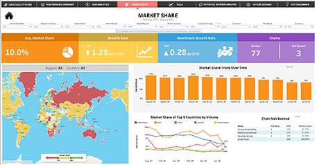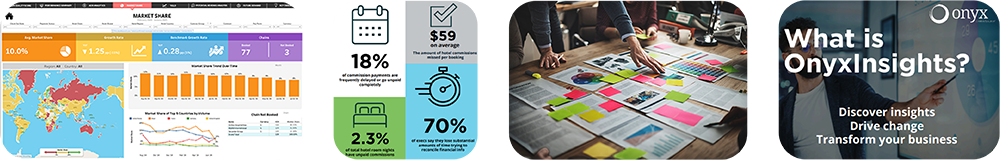 Hotels and travel management companies struggle with fragmented booking data, minimal market context, and negligible competitive intel which inhibit strategic business decisions. OnyxInsights centralizes, transforms, and supplements this complex data into clear, benchmark-driven business intelligence. Organizations gain visibility into performance, uncover growth opportunities, and make confident, data-driven decisions.