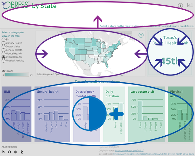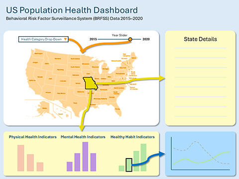 Healthcare providers, policy makers, and health-conscientious individuals need to know the basic health statistics of their states to make informed decisions. This Behavioral Risk Factor Surveillance System (BRFSS) is the premier source for these statistics. This project simplifies the BRFSS’s annual health survey data into easily understood dashboards and datasets.