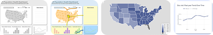 An underutilized population health dashboard suffered from cognitive overload, accessibility issues, and unclear focus. Heuristic evaluations and usability testing to identify pain points, then prioritized and implemented UX and visual design improvements aligned to user needs. The evolved dashboard achieved higher engagement, longer continuous usage, and faster task completion.