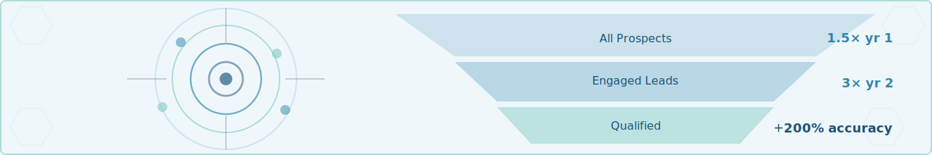 - Increased prospect targeting accuracy by 200% with a market penetration dashboard that reshaped go-to-market strategy